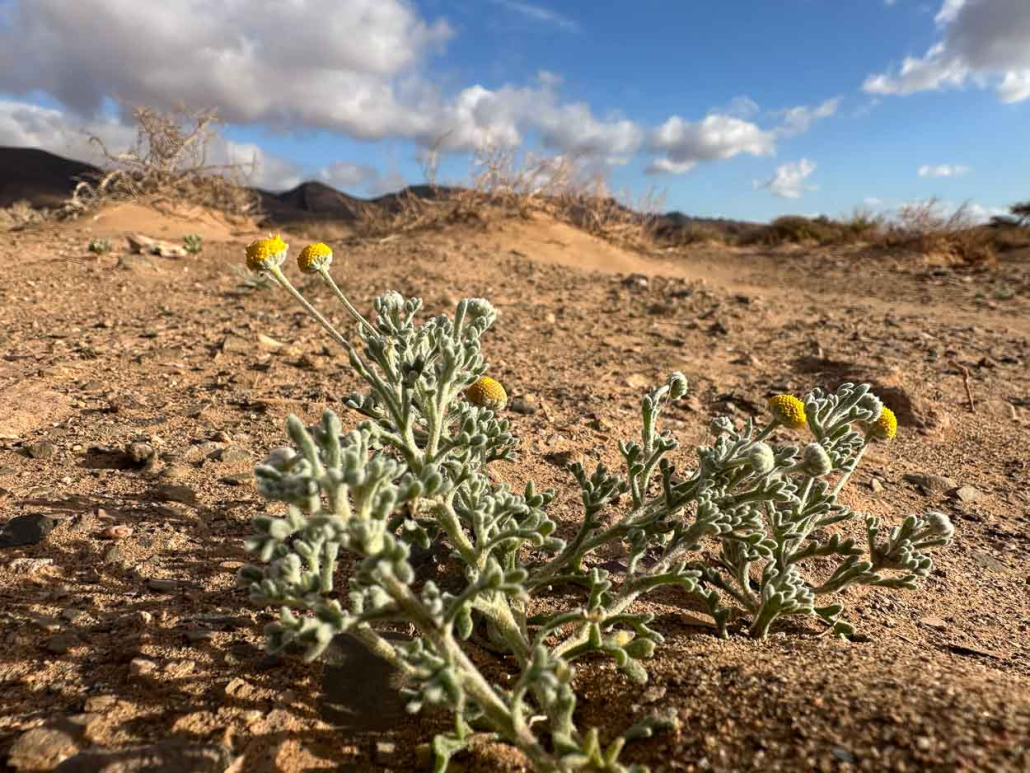 Un « Sirli du désert » remarque notre passage et siffle son chant aigu sans insistance. Il est encore tôt pour qu’il ponde ses œufs dans un nid au cœur d’une petite touffe. Il protège sa couvée des prédateurs par les ruses de son chant qui s’élève dans les tonalités des aiguës qui interpelles, puis il virevolte à la verticale sur huit à dix mètres de haut. Plonge en traçant une courbe en déployant ses ailes qui apparaissent en parties blanches et noires, détournant le prédateur de sa trajectoire et se pose vingt mètres plus loin. Il apparaît couleur sable avec le bec de la même couleur, imperceptible. Il rechante aux aiguës, le prédateur lui bondit dessus, il farandole à nouveau à dix mètres de haut, l’éloignant encore un peu de son nid jusqu’à ce que le prédateur oublie sa proie du départ ! Quelle ingéniosité dame nature à offert au Sirli du désert pour sa survie.