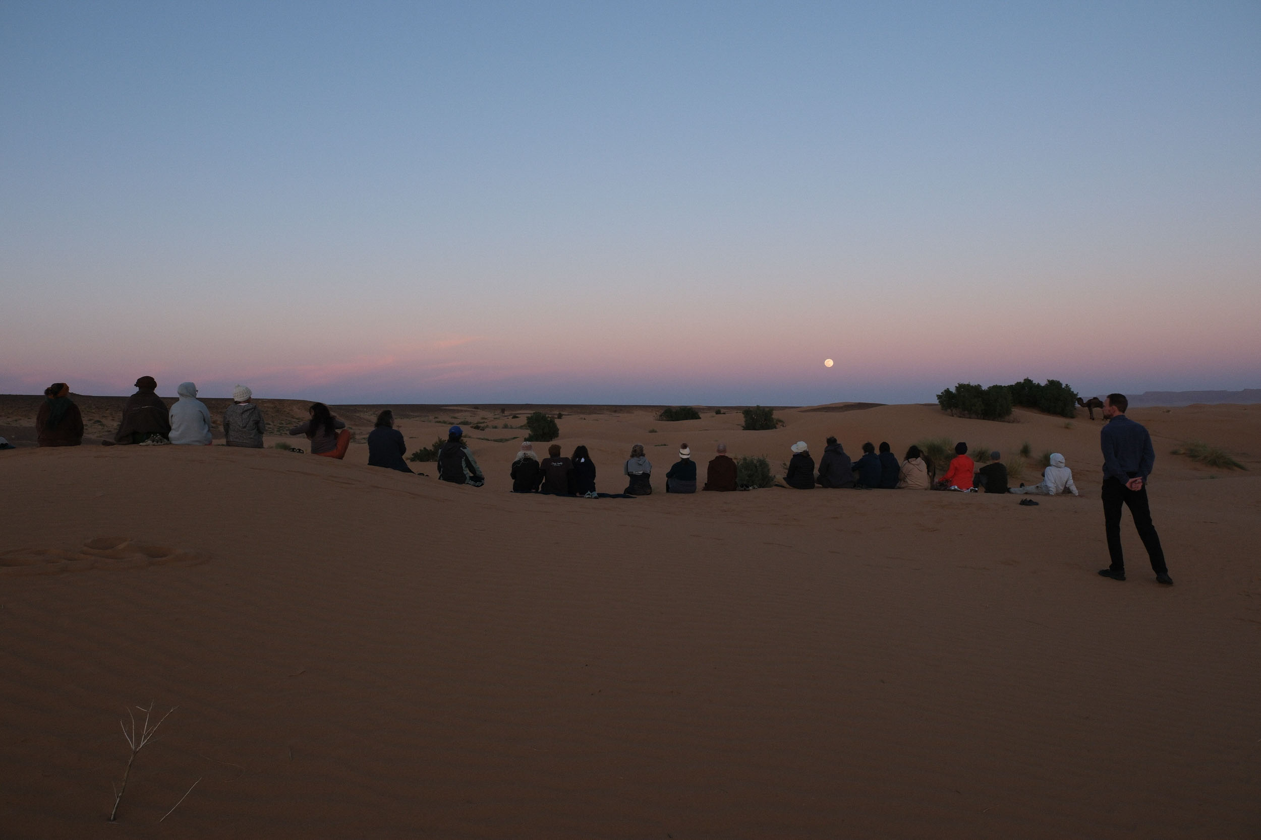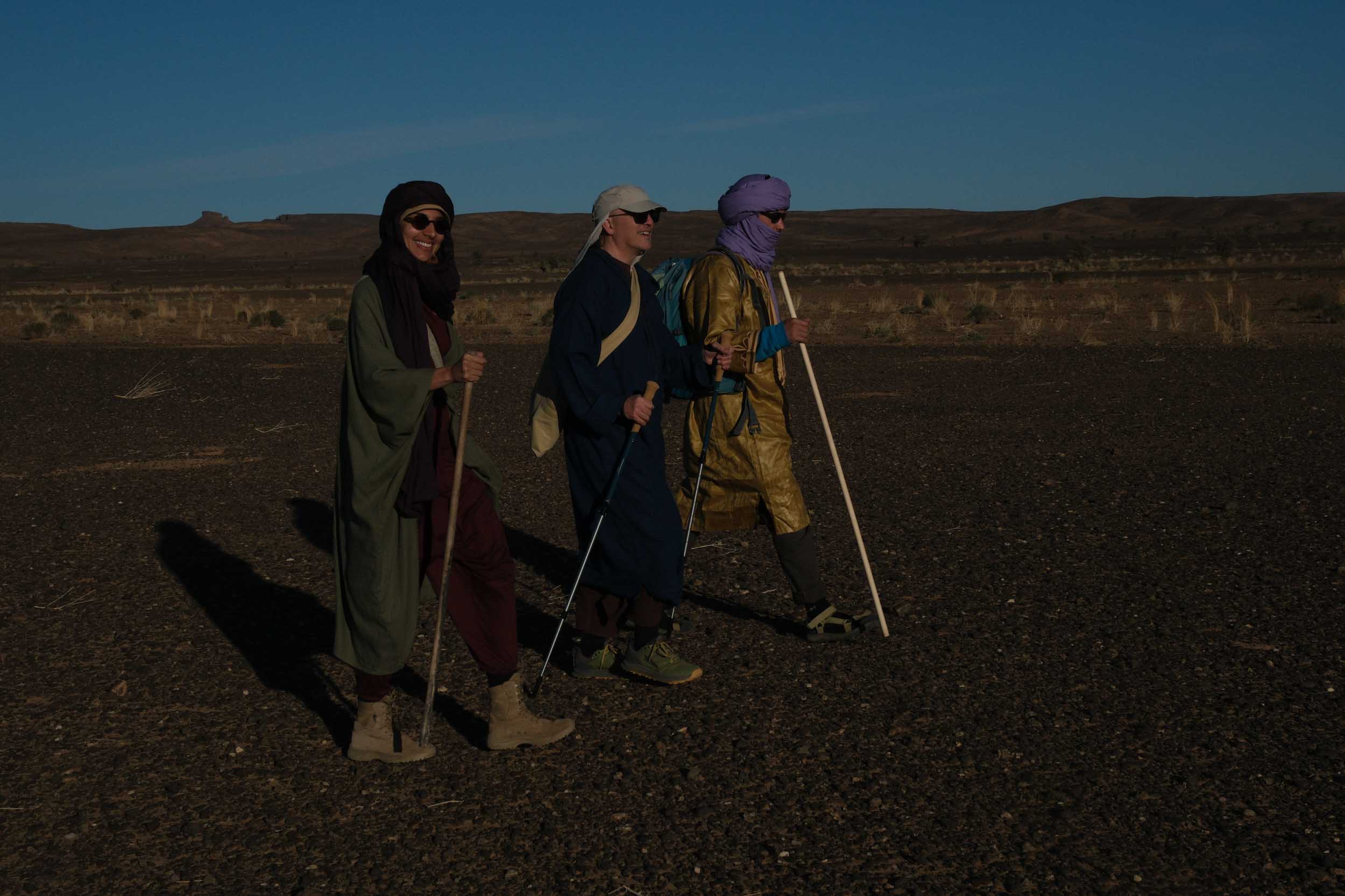 Organisée par Joanna et avec l’accompagnement technique de Désert et Montagne Maroc, cette randonnée spirituelle a regroupé 35 cheminants de 20 nationalités différentes pour marcher ensemble en « pleine conscience » dans le silence monastique du désert marocain.