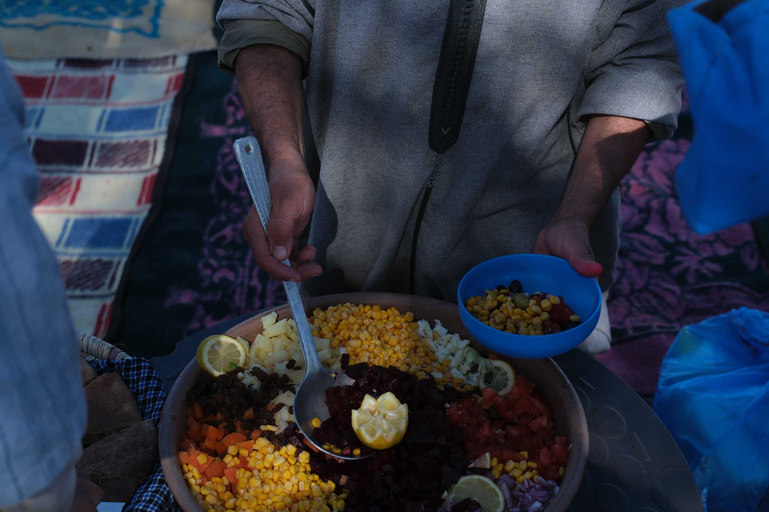 Chaque soir un village de tentes nomades se montait pour accueillir le temps d’une nuit les 60 personnes réunies par cette expédition, les pèlerins et toute l’équipe des guides, cuisiniers, boulangers, chameliers, chauffeurs.